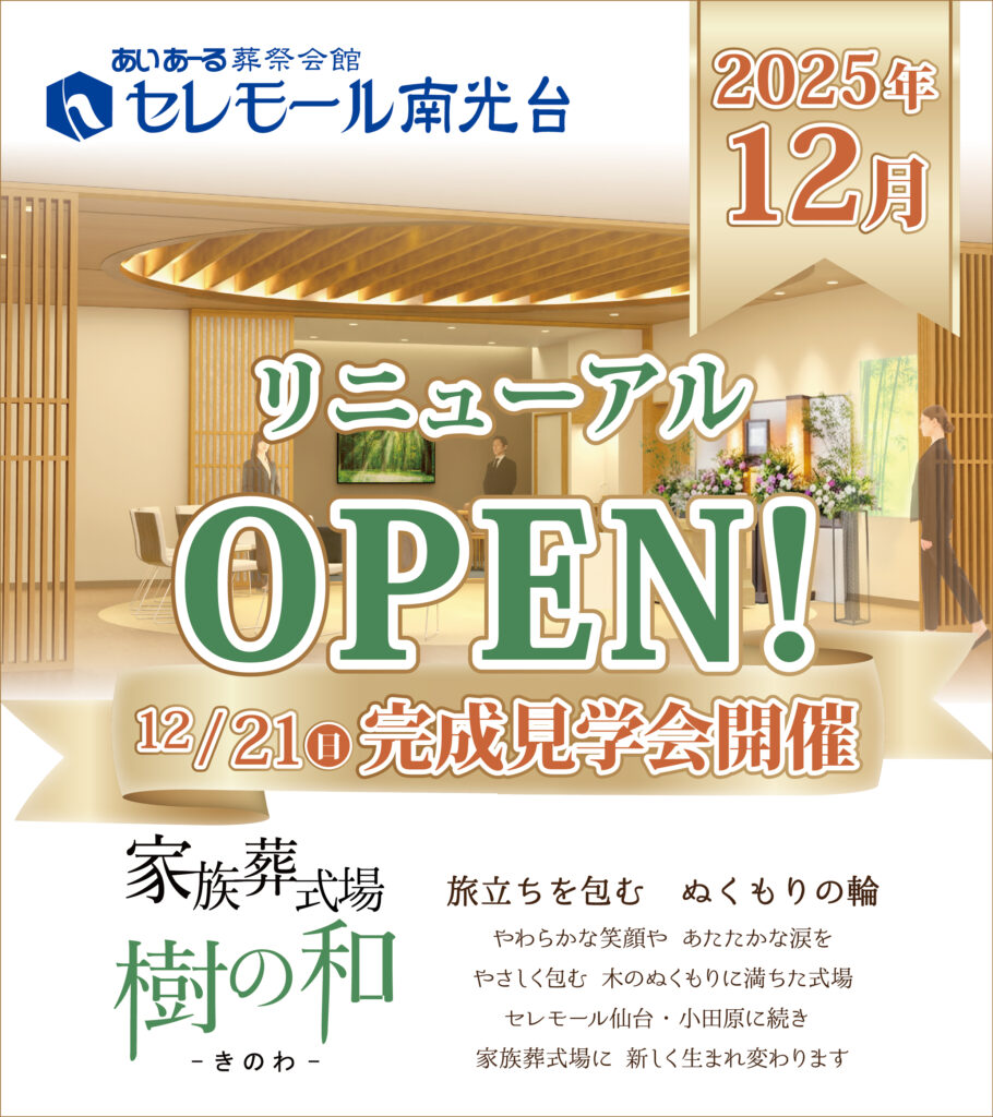 セレモールセレモール南光台が「家族葬式場 樹の和」にリニューアルいたします
