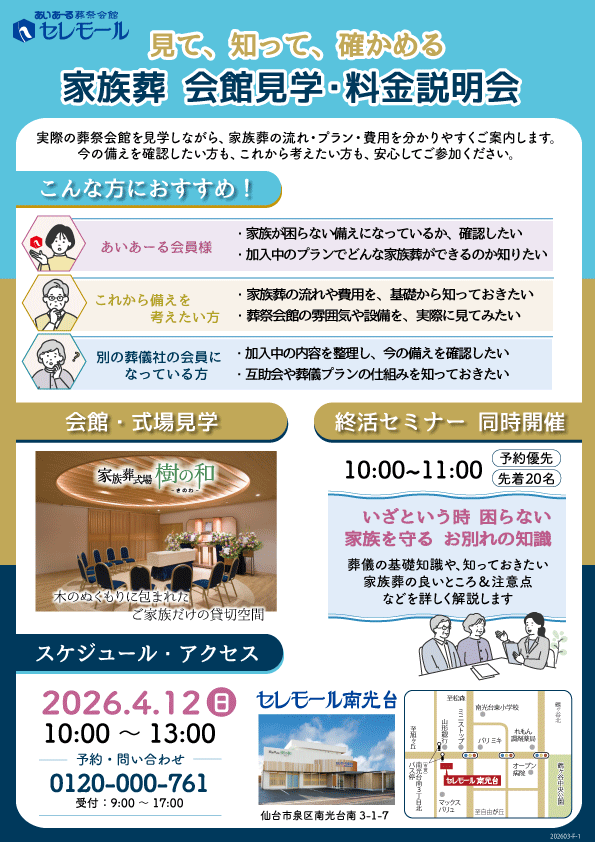 セレモールセレモール南光台「樹の和」会館見学・料金説明会を開催します