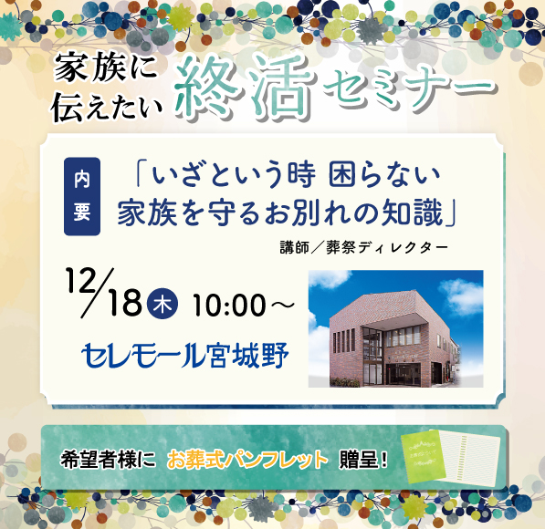 12月18日(木)にセレモール宮城野にて、終活セミナーを開催いたします。